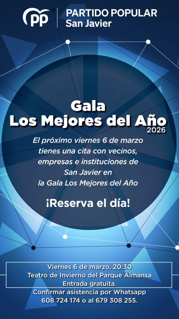 El próximo 6 de marzo a las 20:30 horas tenemos la Gala de Los Mejores, que organiza el PP de San Javier.